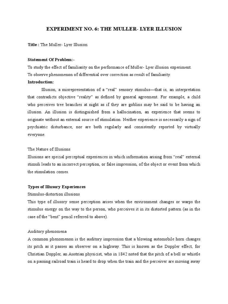 The previous video was not clear so i make the new one hope this will can he. Sensory and perception, psychology test answer: Retinal versus physical stimulus size as determinants of visual perception in simultanagnosia The illusion is about our wrong judgements on the length of lines. Conclusions from 33 independent studies.